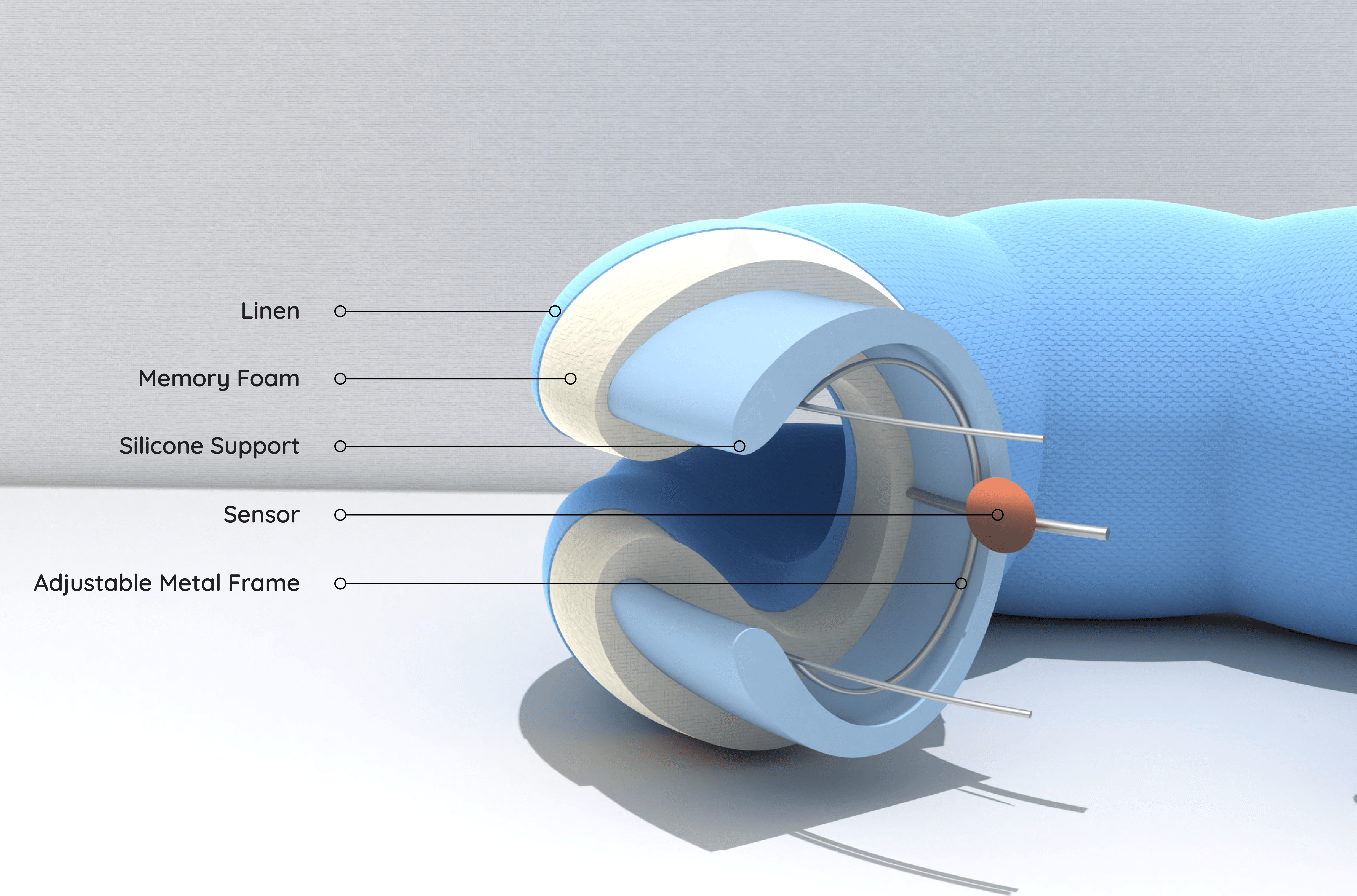 Shaped in our signature C-curve, the pillow gently hugs your neck, creating a cloud of comfort that feels just right for you. Inside, a built-in sensor and adaptive support system work quietly to sense your posture and adjust the pillow’s shape in real time — keeping your head supported and your neck pressure-free.